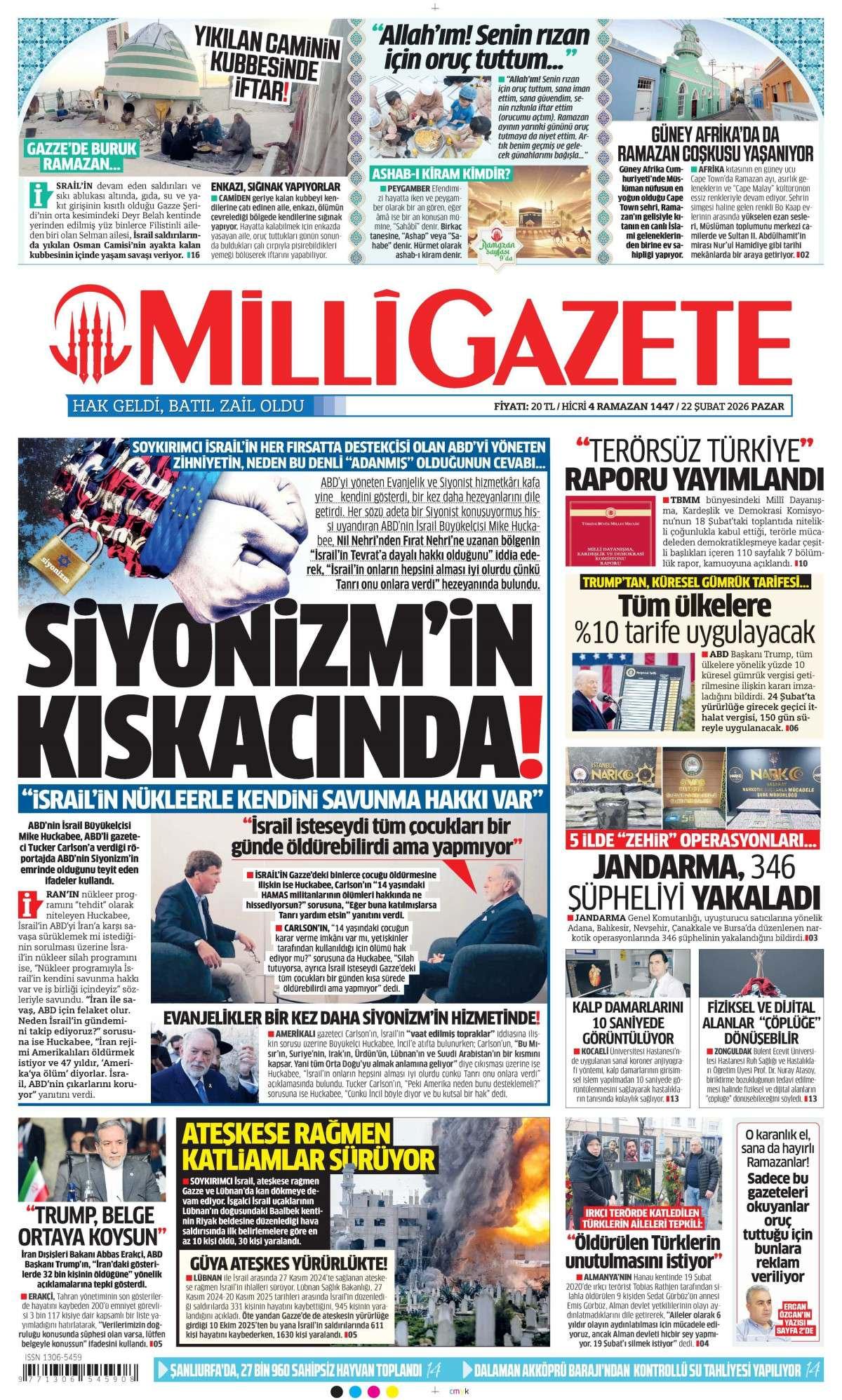Milli Gazetesi 23 Şubat 2026 Günü Gazete Manşetleri